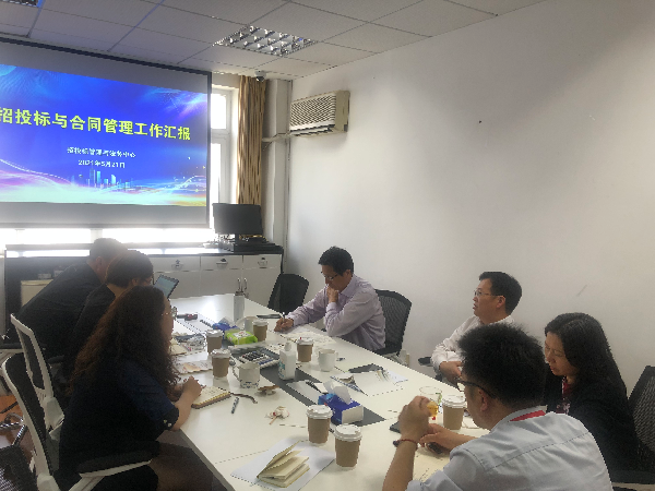 招投标管理与法务中心主任朱为华就部门内部机构设置、工作职责、工作机制及工作开展情况作了汇报,副主任姜永辉及各科室负责人分别对风险防控、采购与合同管理及信息化建设作了汇报。招投标管理与法务中心全体成员参加了本次调研。